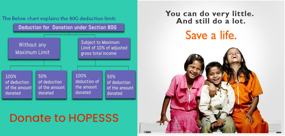 All contributions towards HOPESSS are Tax Exempt 80-G of Income Tax Act in India